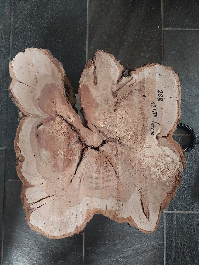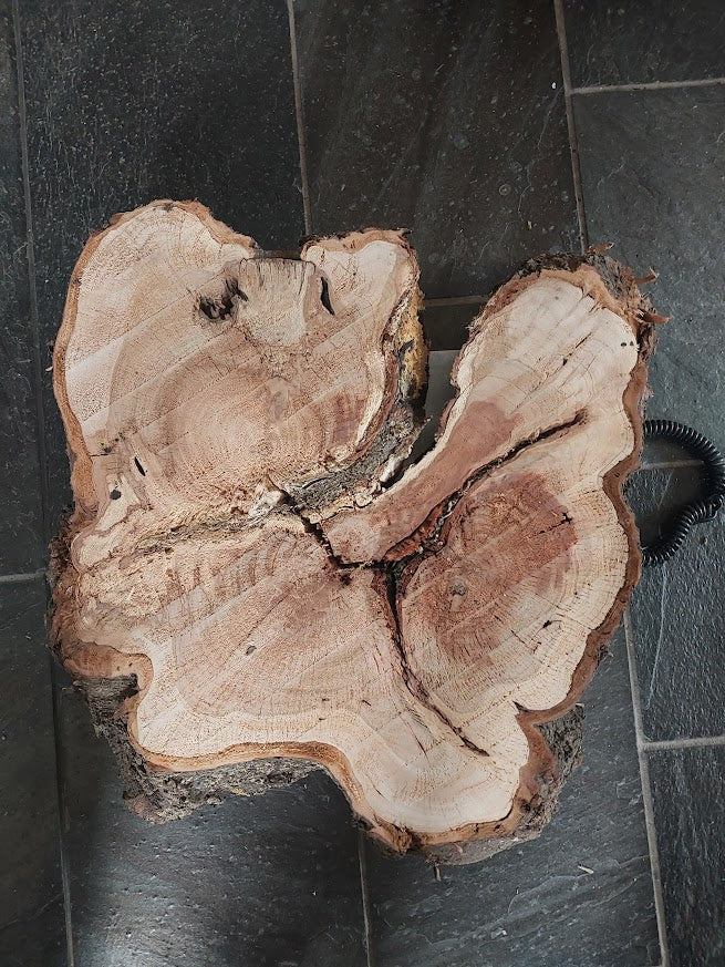 Baumscheiben mit besonders ausgefallenen Formen stammen häufig aus dem Wurzelbereich oder aus Gabelungen und sind somit nur in geringen Stückzahlen vorhanden. Es gibt jedoch hin und wieder auch mal ganze Stämme, die sehr speziell geformt sind.