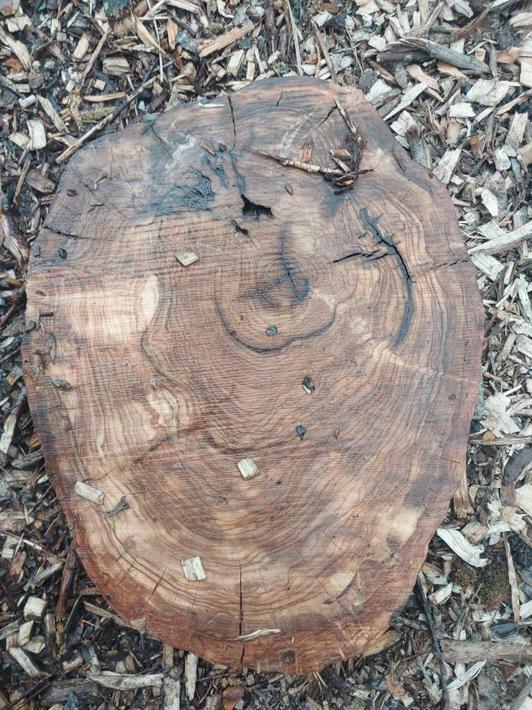 Es wird freihändig gesägt, die Dicke der Baumscheibe kann also an unterschiedlichen Stellen leicht schwanken. Je dicker die Scheibe ist, desto stabiler ist sie auch. Neben der Optik das vielleicht wichtigste Kriterium.