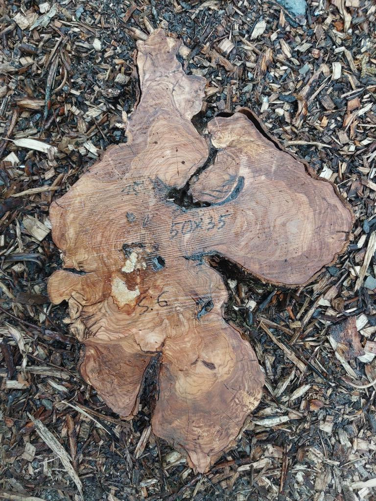 Baumscheiben mit besonders ausgefallenen Formen stammen häufig aus dem Wurzelbereich oder aus Gabelungen und sind somit nur in geringen Stückzahlen vorhanden. Es gibt jedoch hin und wieder auch mal ganze Stämme, die sehr speziell geformt sind.
