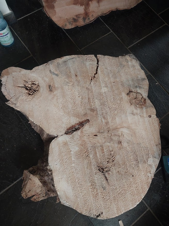 Baumscheiben mit besonders ausgefallenen Formen stammen häufig aus dem Wurzelbereich oder aus Gabelungen und sind somit nur in geringen Stückzahlen vorhanden. Es gibt jedoch hin und wieder auch mal ganze Stämme, die sehr speziell geformt sind.
