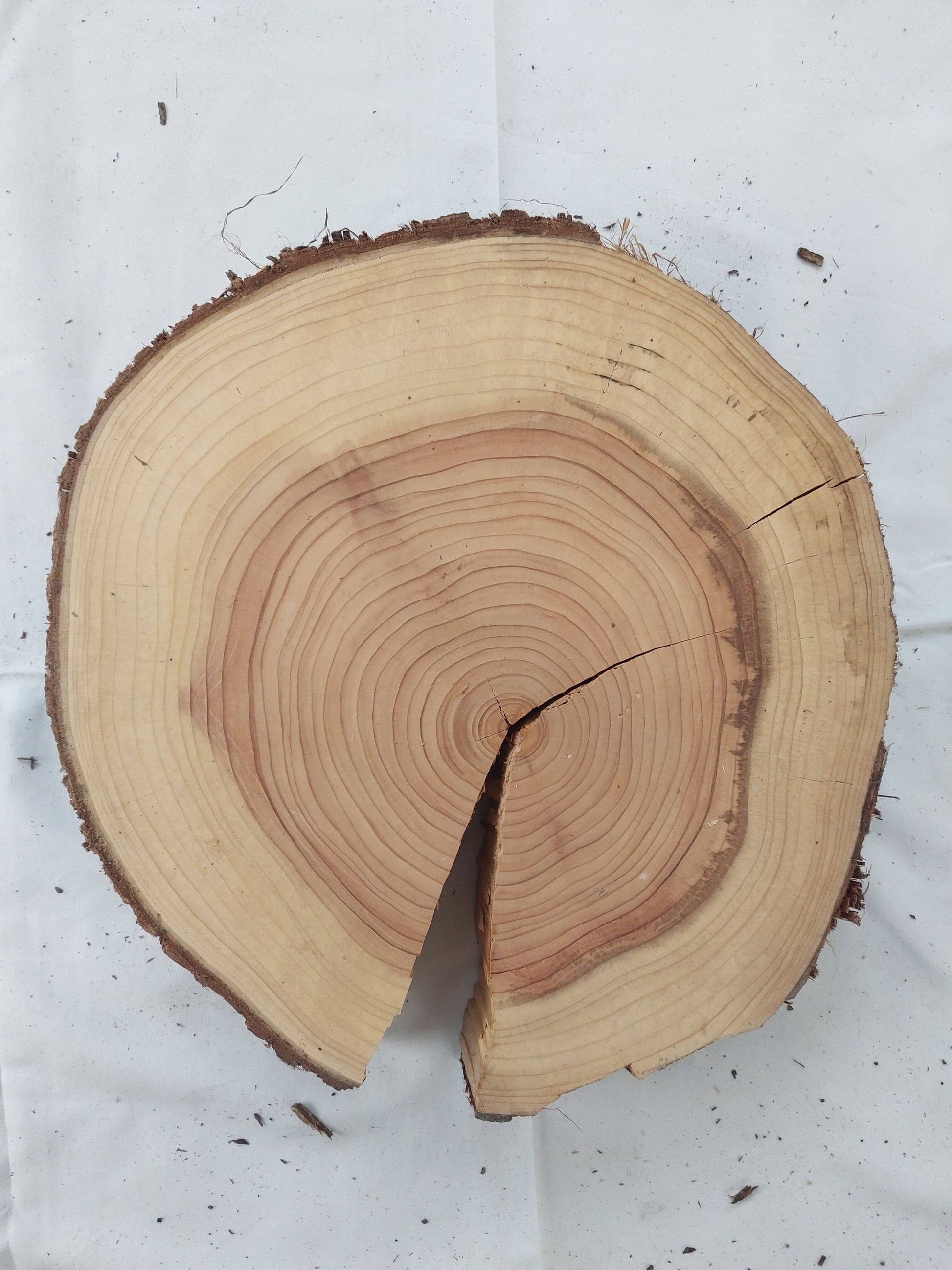 Es wird freihändig gesägt, die Dicke der Baumscheibe kann also an unterschiedlichen Stellen leicht schwanken. Je dicker die Scheibe ist, desto stabiler ist sie auch. Neben der Optik das vielleicht wichtigste Kriterium.