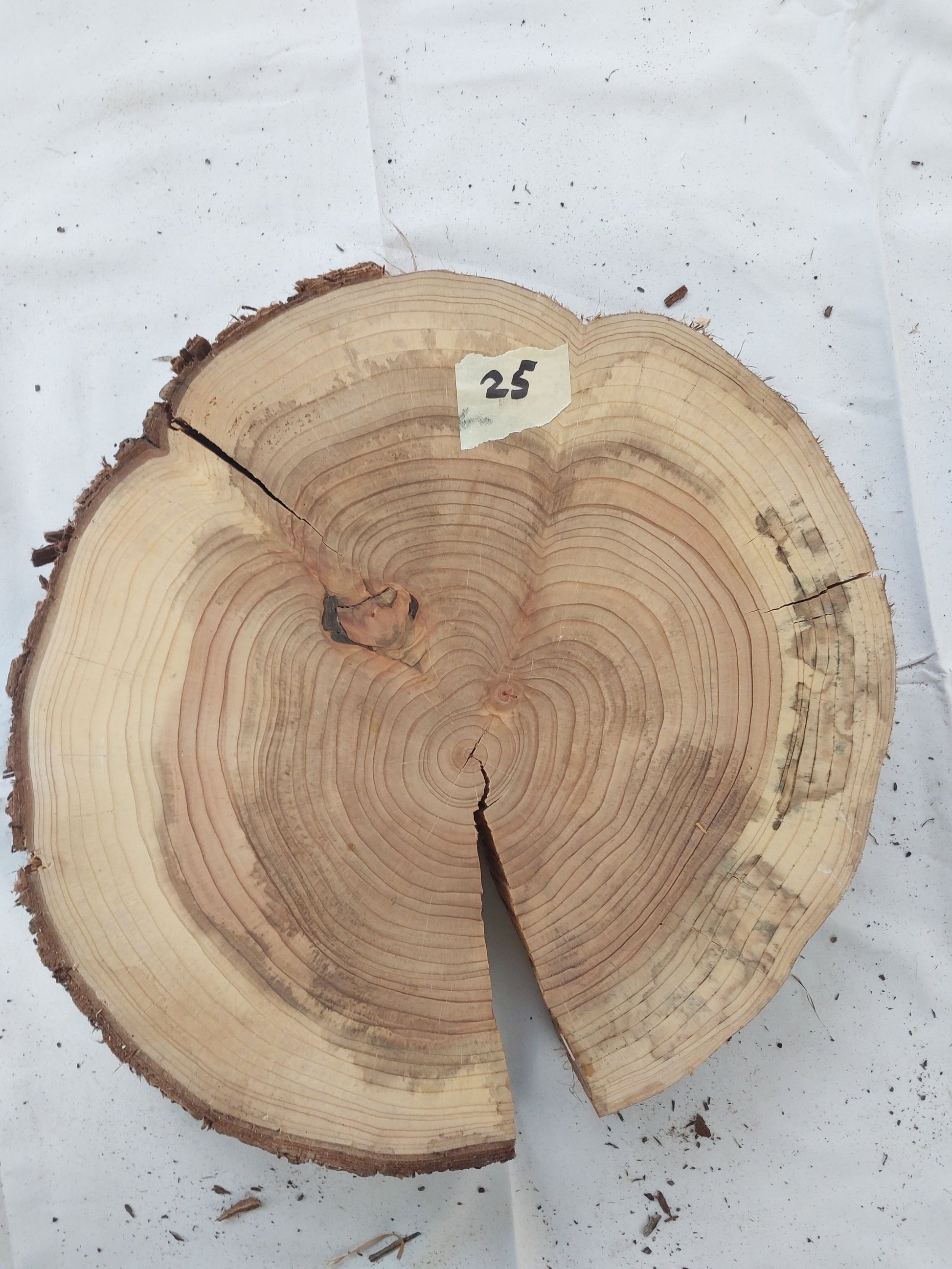 Es wird freihändig gesägt, die Dicke der Baumscheibe kann also an unterschiedlichen Stellen leicht schwanken. Je dicker die Scheibe ist, desto stabiler ist sie auch. Neben der Optik das vielleicht wichtigste Kriterium.