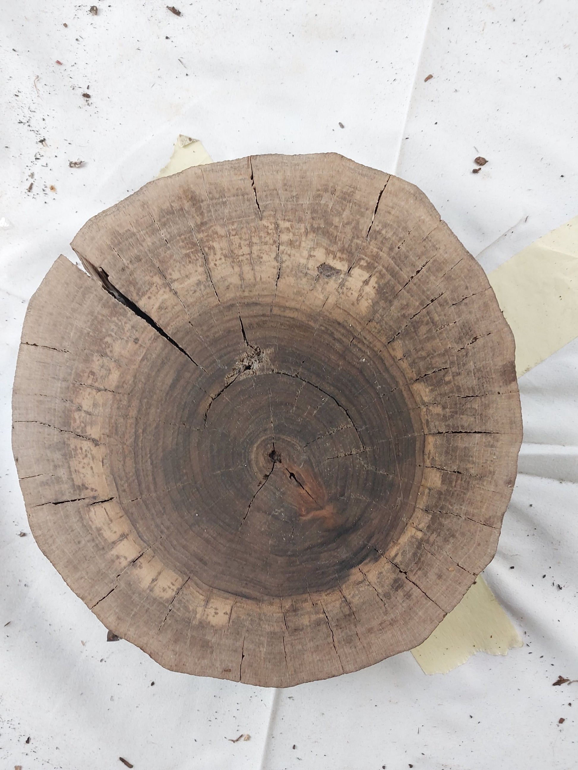 Es wird freihändig gesägt, die Dicke der Baumscheibe kann also an unterschiedlichen Stellen leicht schwanken. Je dicker die Scheibe ist, desto stabiler ist sie auch. Neben der Optik das vielleicht wichtigste Kriterium.